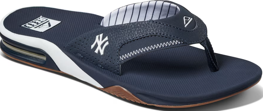 The REEF Fanning Bottle Opener Sandals for Men are the best means to express your love to the New York Yankees and at the same time have the comfort of wearing sandals. To the fans who like style and utility, they have sandals decorated with the traditional Yankees brand, and a bottle opener which is inbuilt on the sole. They are perfect to use in game days, beach visits or backyard parties. Whether you are out on the road or travelling long distances, you can show your team pride because of the comfortable footbed and the durable straps that keep you comfortable all day long.