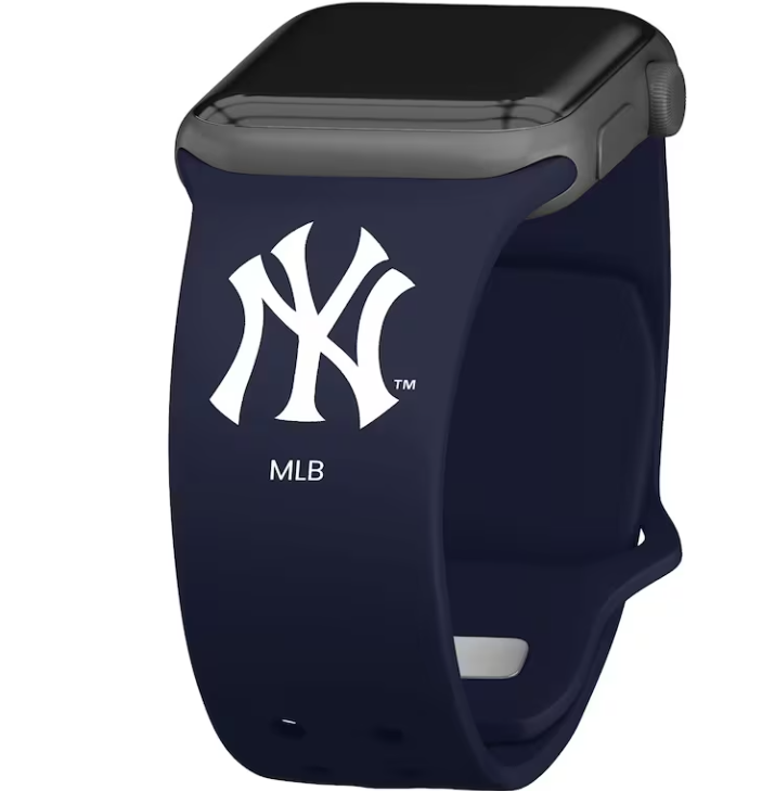 The New York Yankees Navy Logo Silicone Apple Watch Band is the perfect way to display your pride in your team. This band is constructed out of silicone that is both flexible and of high quality. As a result, it provides a comfortable fit while also ensuring that your Apple Watch is safe and secure throughout your daily activities. It is the ideal item for fans who are looking to blend team spirit, style, and usefulness in a single, sophisticated design because it prominently displays the classic Yankees emblem in a vibrant navy color.