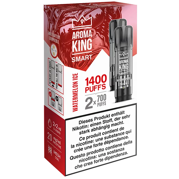 Holen Sie sich noch heute die Aroma King SMART Watermelon Ice Pods 2 x 20 mg und erleben Sie mit jedem Zug pure, saftige Erfrischung!