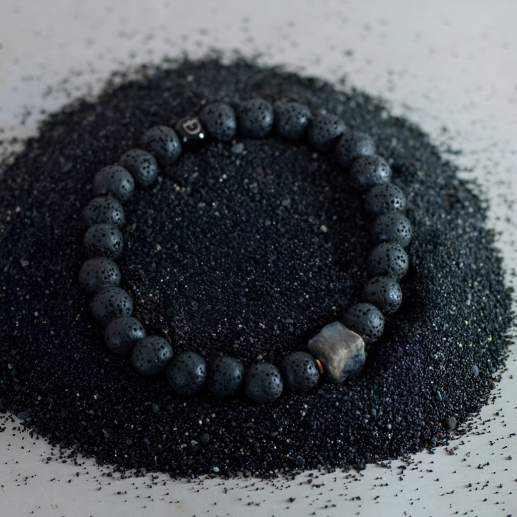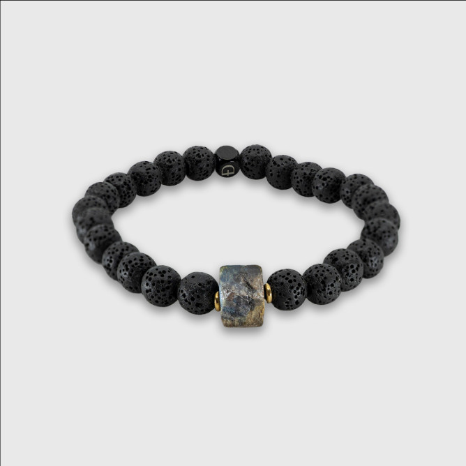 Bransoletka  męska z  lawą wulkaniczną i wyrafinowaną elegancją szafiru to doskonałe połączenie surowej intensywności lawy wulkanicznej i wyrafinowanej elegancji szafiru. Te porowate, czarne kulki lawy nadają jej uziemiający, ziemisty charakter, a szafir dodaje warstwę wyrafinowanego refleksu. To połączenie tworzy uderzający kontrast wizualny i symboliczny, reprezentując zarówno niezwykłą wytrzymałość, jak i głęboką mądrość. Każda najmniejsza wypukłość lub nieregularność w kamieniu dodaje charakteru, czyniąc Twój wyrób absolutnie wyjątkowym. Prawda?