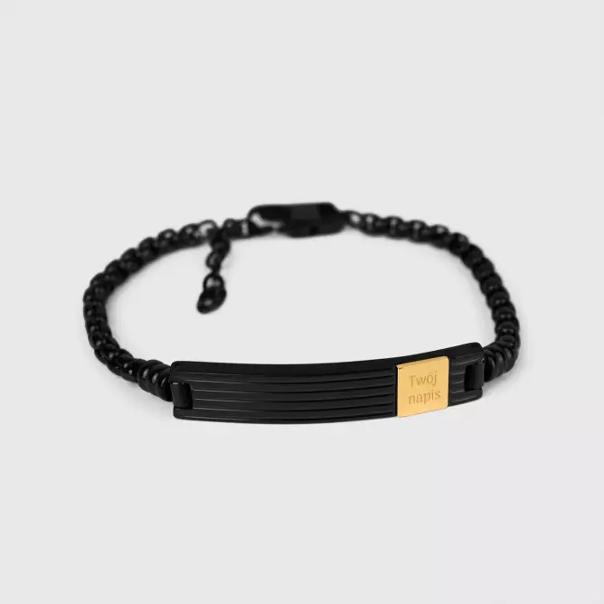 BRANSOLETKA  MĘSKA BLASZKA CZARNO ZŁOTA  w pełni ukazuje idealne połączenie nowoczesnej elegancji i klasycznej symboliki. Czerń i złoto tworzą razem efektowny wygląd, który sprawdzi się zarówno w codziennych, jak i formalnych stylizacjach. Metaliczne detale pięknie komponują się z wytrzymałymi, hipoalergicznymi materiałami, zapewniając komfort i trwałość. To naprawdę świetny element garderoby.
