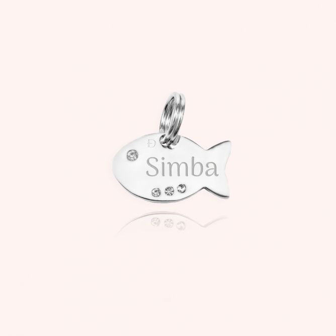 IDENTYFIKATOR  DLA KOTA Z GRAWEREM RYBKA Z CYRKONIĄ  zamienia prostą identyfikację w piękny, elegancki dodatek. Wykonany z wytrzymałej stali nierdzewnej, jest odporny na działanie czynników atmosferycznych, a jednocześnie niezwykle lekki i wygodny dla kota. Lśniące cyrkonie dodają mu wyjątkowego charakteru, zapewniając dekoracyjny i funkcjonalny charakter kociego akcesorium. Spersonalizowany grawerunek pozwala na dodanie imienia, numeru telefonu, a nawet uroczych symboli, zapewniając jednocześnie bezpieczeństwo i wyjątkowość. Naprawdę, jest taki uroczy!